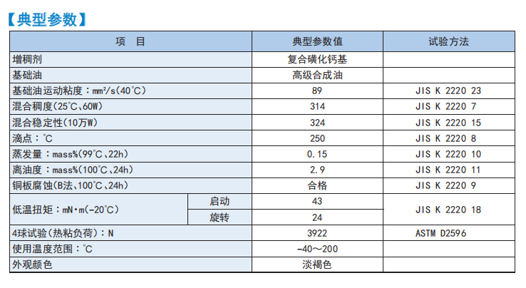 (3) 耐極壓性 依靠耐重負荷的基礎油和增稠劑的功效,實現(xiàn)優(yōu)于萬能潤滑脂的高耐極壓性。